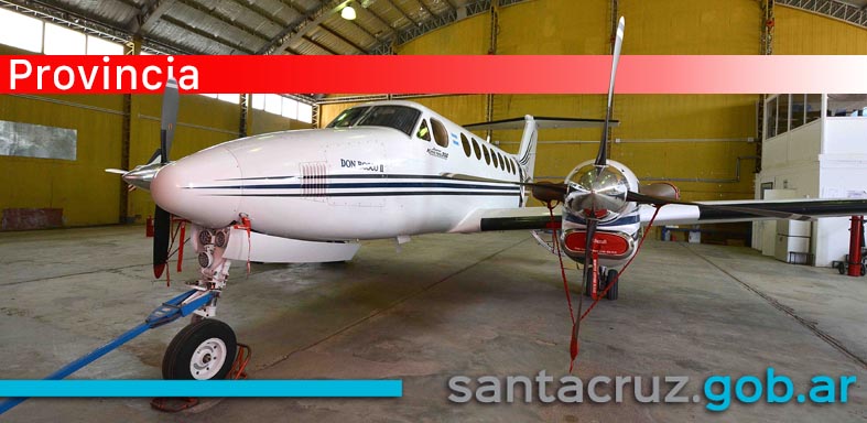 La provincia de Santa Cruz cuenta con dos aviones que en los últimos años estuvieron fuera de servicio: el Beechcraft (Beech Super King Air 350) y el Cessna Citation V. Los últimos días de octubre del 2016 ya había arribado a la capital de Santa Cruz el Beech Super King Air 350 y prontamente se puso al servicio de la población que requiera ser trasladada a diferentes lugares por situaciones de salud. Durante los últimos dos meses de ese año se realizaron 12 traslados a la ciudad de Buenos Aires, y en lo que va de 2017 la cifra es de 29 vuelos sanitarios con el mismo destino, alcanzando la totalidad de 41 tramos cubiertos.