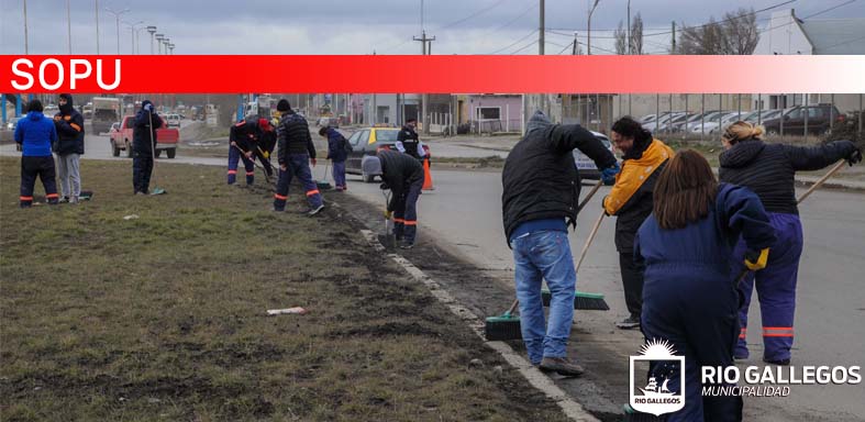 Durante el transcurso de la mañana, una cuadrilla de agentes pertenecientes al área de Limpieza Urbana se abocó a trabajos de saneamiento sobre autovía “17 de Octubre” en ambos sentidos. Para tales tareas los agentes contaron con apoyo de una mini cargadora, escobillones, palas y carretillas.