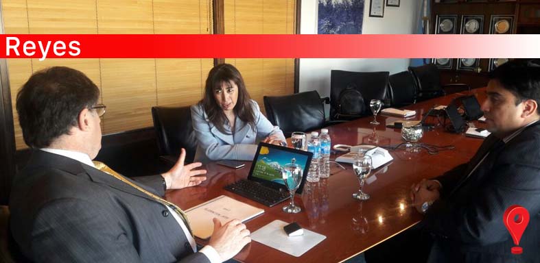 La diputada provincial Roxana Reyes se reunión esta mañana con Alberto Bello y Marcelo Loncón, autoridades del Banco Santa Cruz S.A.