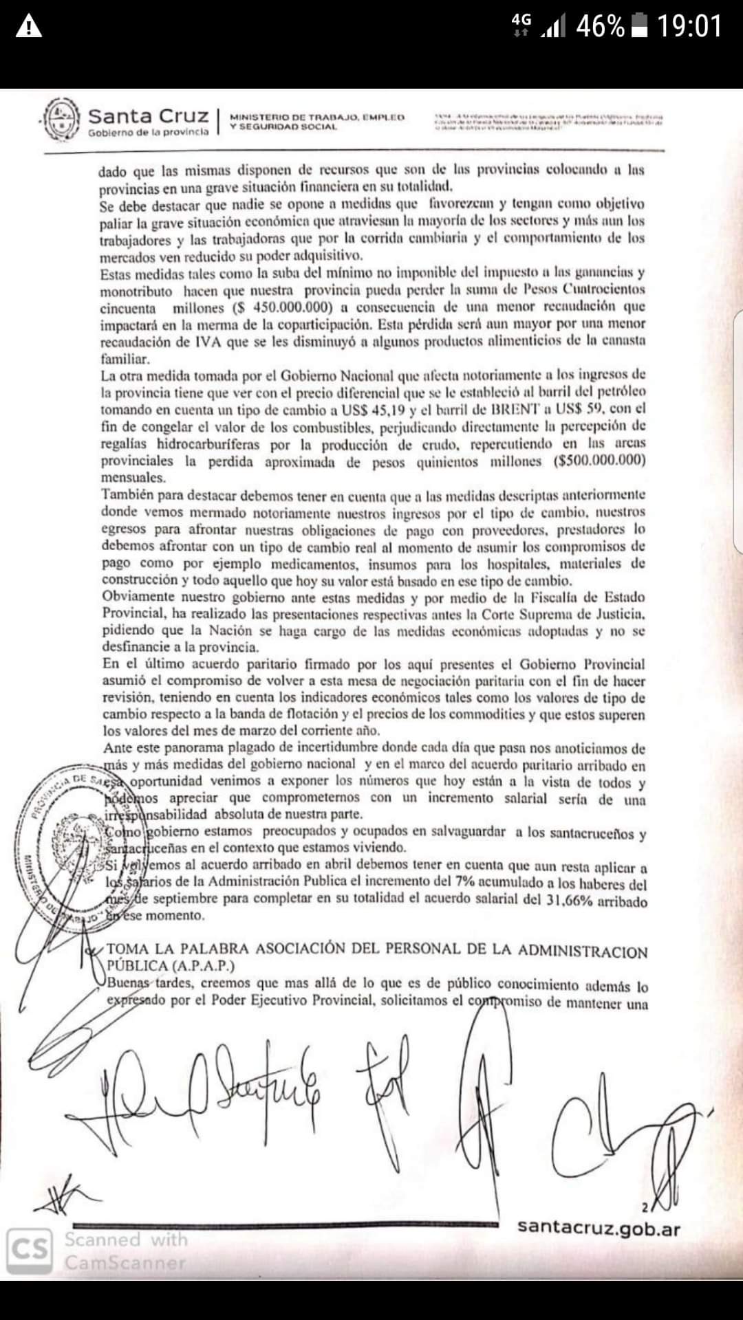 La crisis la deben pagar los CEOS del Gobierno, empresarios, bancos y la casta financiera por cada gota de petróleo y cada recurso natural que se llevan de nuestra patria hacia el exterior. El gobierno nacional en lugar de subir la cuota de regalías para potenciar las economías provinciales y que cada gobernador pueda dar un aumento salarial para que cada trabajador y trabajadora pueda vivir mejor, llevó a la practica totalmente lo contrario, quitó las regalías y estatizó el pago de la deuda externa produciendo una fuga de capitales en el Banco central que golpea directamente el bolsillo de cada compañero y compañera, que no es un dato menor al sentarse en una mesa de negociación colectiva. Es por eso que ATE Santa Cruz fue a la mesa de Paritarias centrales en presencia de Jose Navarro Secretario Gremial del CDP Sandra Sutherland Pro- Secretaria Administrativa del CDP y Alba Curaqueo Secretaria General de ATE Pico Truncado y exigieron al Poder Ejecutivo Provincial lo siguiente:
