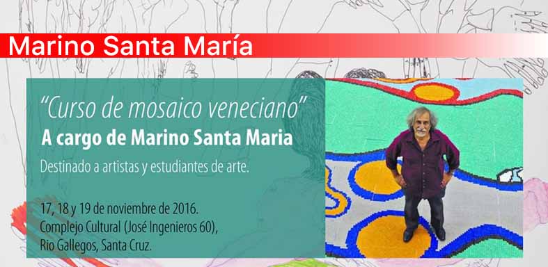 El Área de Artes Visuales de la Secretaría de Estado de Cultura, dependiente del Gobierno de Santa Cruz, informa al público interesado que el reconocido artista argentino Marino Santa María dictará un curso de mosaico veneciano en el Complejo Cultural Santa Cruz los días 17, 18 y 19 de noviembre.