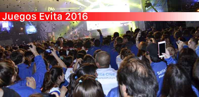 Alrededor de las 19 hs, como estaba pactado, se realizó el acto inaugural en la Plaza Güemes. Allí se montó un gran escenario, donde los representantes de Santa Cruz estuvieron acompañados por el Secretario de Deporte, Rodolfo Marcilla. De esta manera, con una plaza poblada por chicos y chicas de toda la Argentina se oficializó la edición de los Juegos Evita 2016.