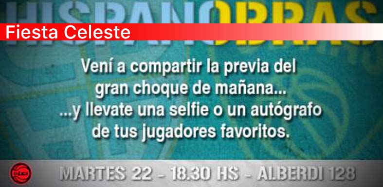 En la previa del partido Hispano- Obras que se realizará el día de mañana Miércoles 23 en las instalaciones del Boxing Club; hoy a partir de las 18:30 hs. en Alberdi Nº 128, los jugadores y el cuerpo técnico recibirán a los simpatizantes para disfrutar de un grato momentos donde podrán sacarse fotos con sus jugadores preferidos.