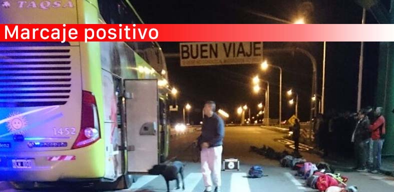 En el lugar se hicieron presente personal de la División Narcocriminalidad y Canes, donde se llevo a cabo la requisa del colectivo y siendo las 23.45 Hs aproximadamente uno de los canes hizo un marcaje positivo en el entretecho del baño del micro donde se secuestró 141 gramos de Marihuana.