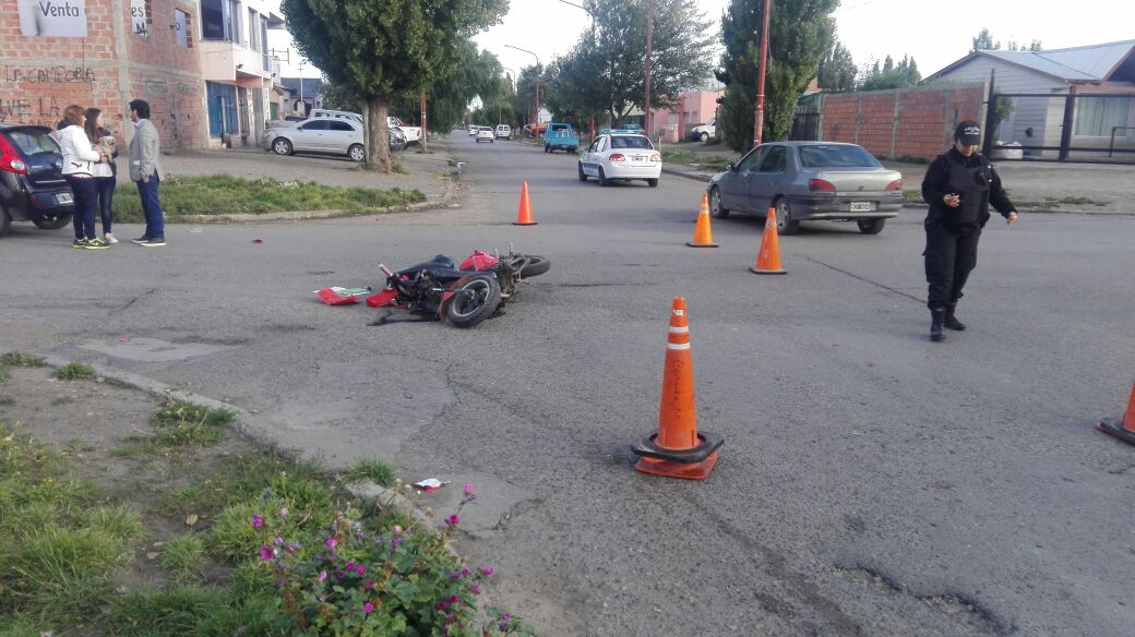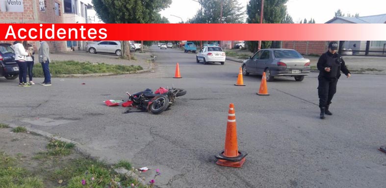 En horas de esta mañana el primero de los accidentes que pudimos registrar en las intersecciones de Veles Sarsfield y Juan B Justo. Se trato de una motocicleta y un vehículo color negro, Fiat Palio. producto de este accidente se pudo saber que una mujer de sexo femenino (32 años) resulto con heridas por lo que fe trasladada al hospital a fin de determinar la gravedad de las lesiones. la Division Accidentología Vial de la Policía de Santa Cruz trabajo en los peritajes de forma para la determinación y registro de los hechos.