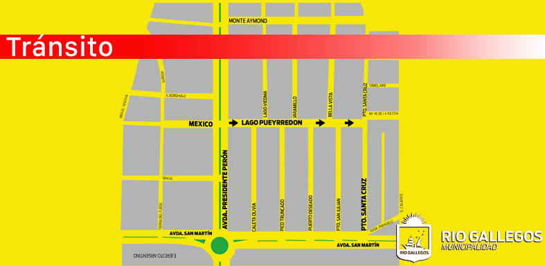 Por disposición 123/2016 del Concejo Deliberante capitalino, a partir del jueves 07 de setiembre, la calle Lago Pueyrredón, pasará a tener sentido único desde Avenida Juan Domingo Perón hacia calle Santa Cruz, coincidente con el sentido de la calle México.