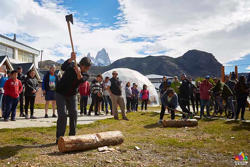 La jornada del sábado 17 inició con el trekkatlon “Bajada del Torre” que tuvo su punto de largada a las 12 hs. desde Laguna Torre. Luego de recorrer 11 km., los corredores fueron llegando al Gimnasio Municipal, donde los esperaba un puesto de hidratación y alimentos nutritivos para recuperar energía. Seguido a esto, en el mismo predio se realizó el clásico Concurso de Hacheros con una amplia participación de niños, niñas, hombres y mujeres.