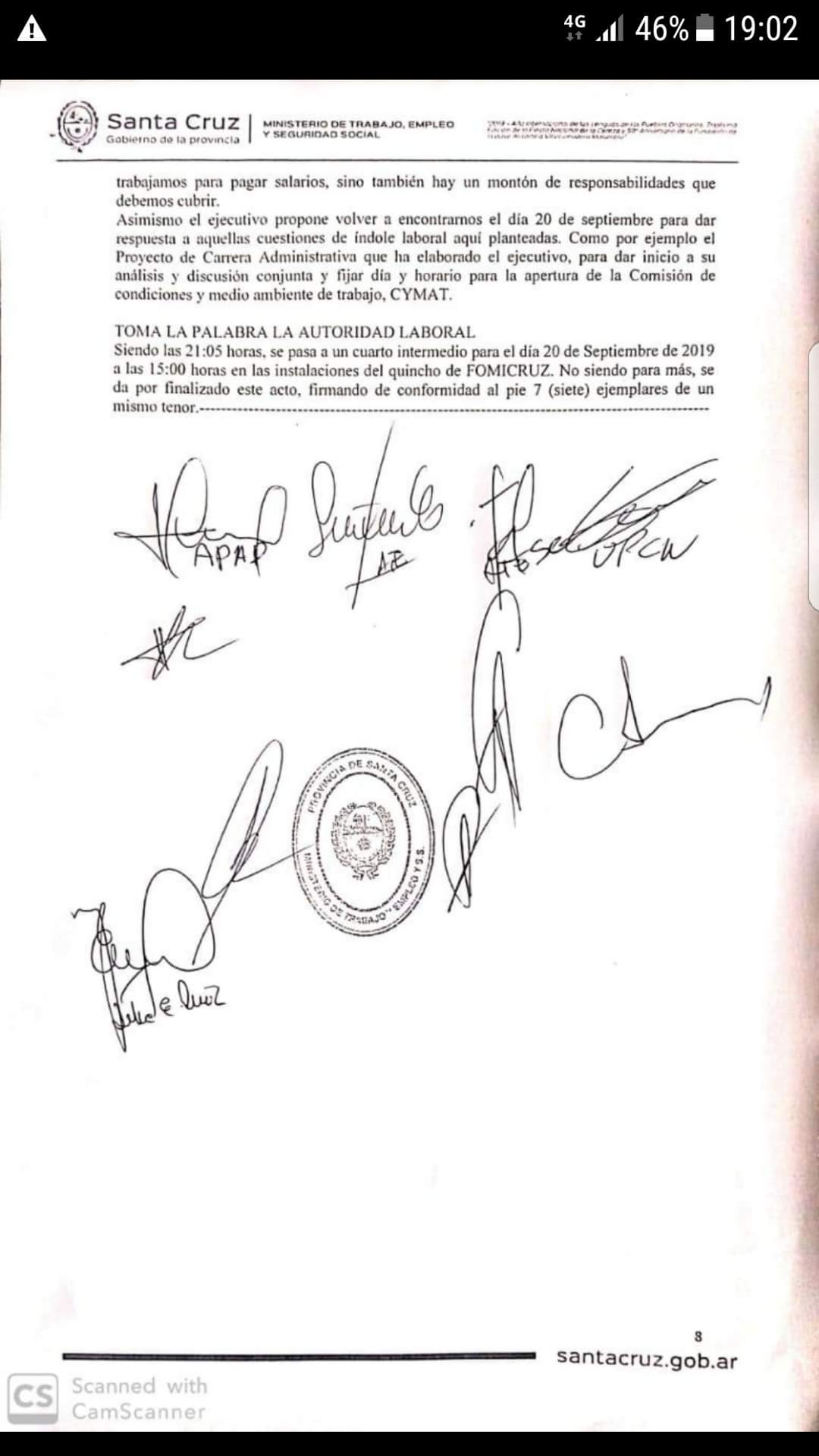 Pondremos en funcionamientos nuestros mecanismos de debate sindical interno para evaluar la situación que planteo el gobierno provincial, pero insistimos una ves más en acortar los plazos y reunirnos el 20 de Septiembre, lo cual quedó firmado y homologado.